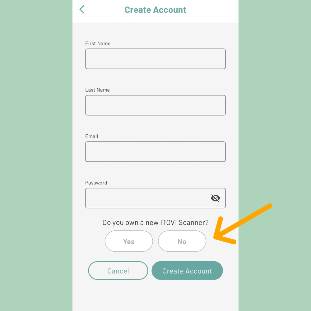 Enter your first name, last name, email, and create a password. Confirm ownership of your new iTOVi